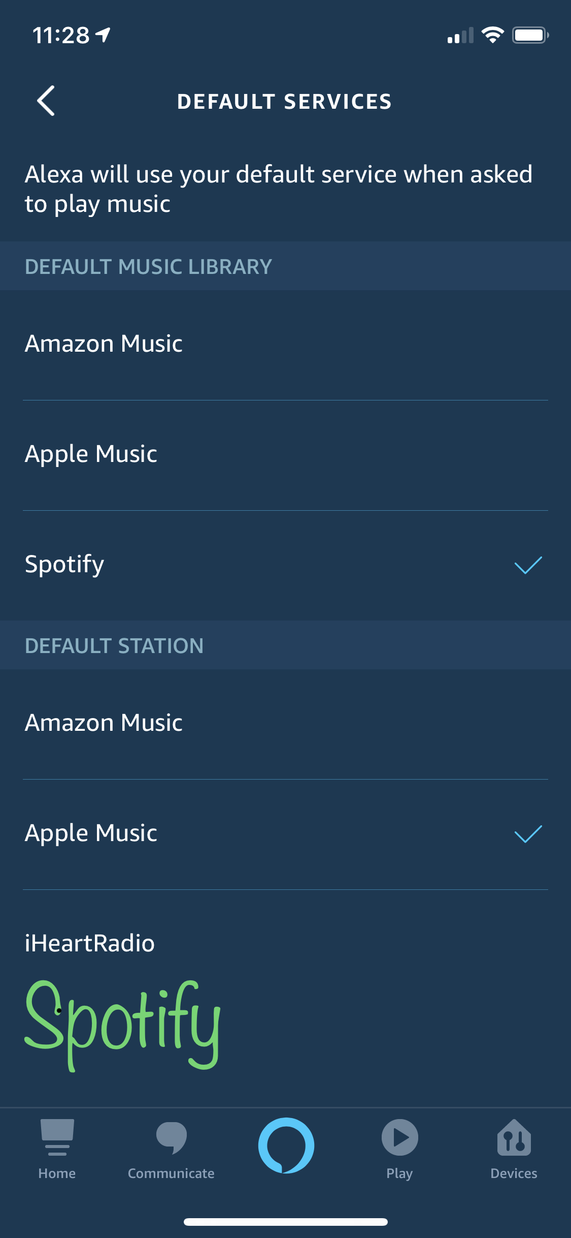 Open the Alexa app Tap the hamburger icon in the upper left corner Tap Settings Scroll down and tap Music Podcasts Tap Default Services Set Spotify as your default under the headings Music and if youd like Artist Genre. Select Spotify then Link account to Alexa. Tap on Link New Service then choose Spotify.